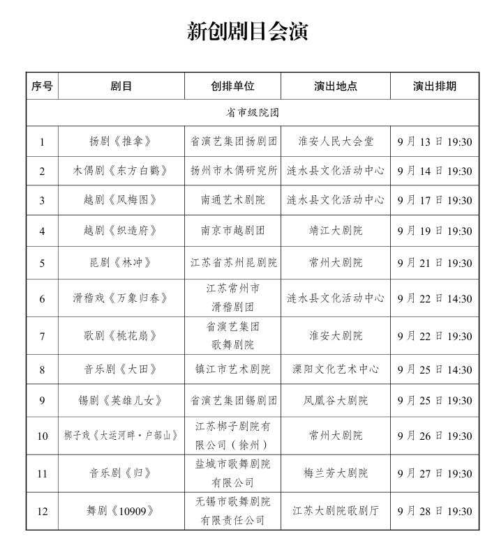 交汇点讯 由省委宣传部、省文旅厅、省文联主办的2024紫金文化艺术节主体活动将于9月至10月在江苏举行。9月13日,艺术节新创剧目会演将在淮安开启首场演出。