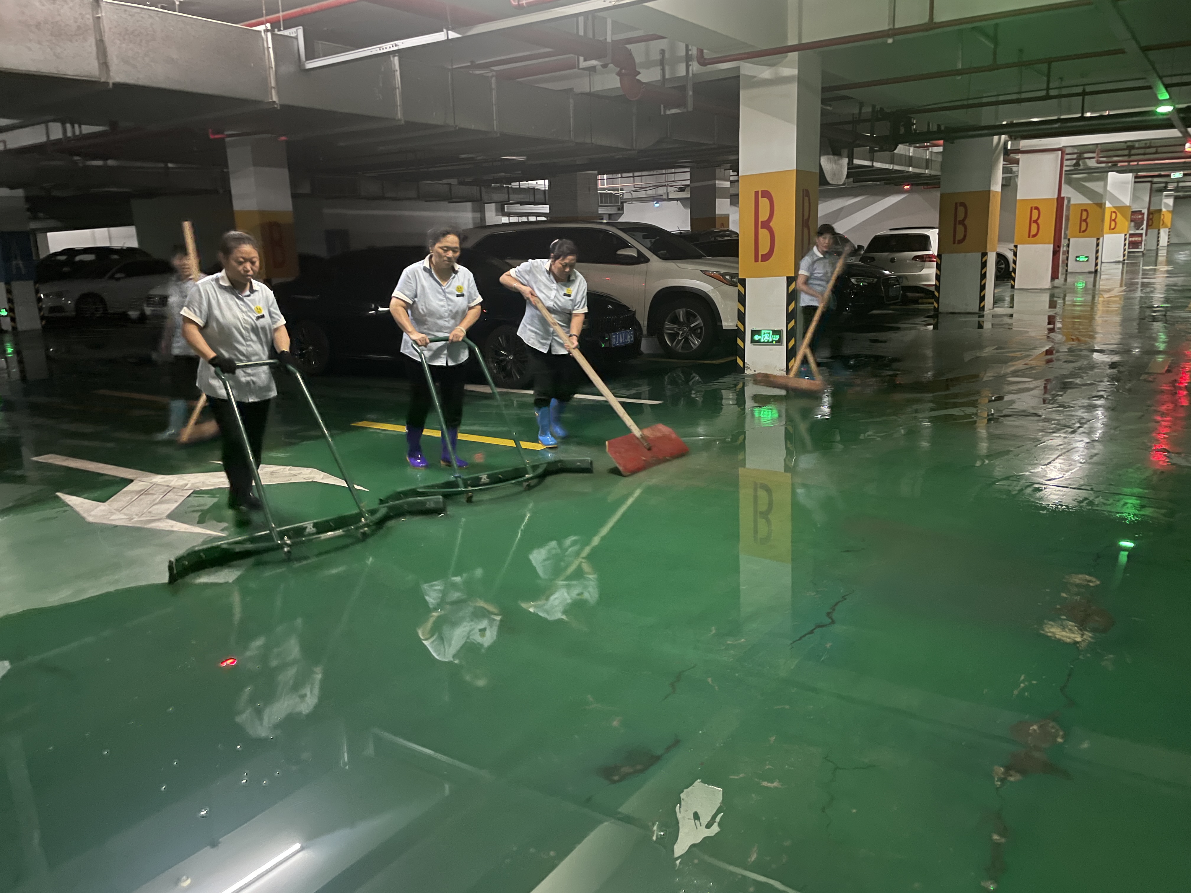 雨中巡检、积水清理、排水口疏通……降雨来势迅猛,该集团资产部协同东方物业公司、东方新锐公司组织200余名精干力量第一时间进行防汛工作,奔赴现场抢险,为业主开辟暴雨“绿色通道”。