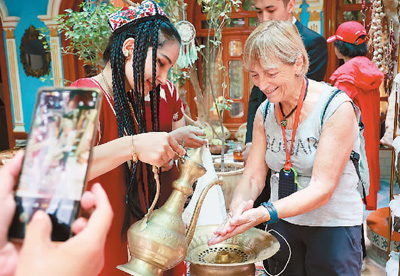 喀什是维娜游历中国的第一站。漫步在喀什古城景区的街巷里,她感慨不已,“当游记中所描述的热闹场景真实地出现在我的眼前,仿佛梦中场景变成了现实。”在当地居民的引导下,维娜学着拨弹民族乐器,亲手制作馕饼,还用筷子品尝了地道的凉皮与糕点。“我与筷子还处于打架阶段,但已经进步很多了。”维娜说。