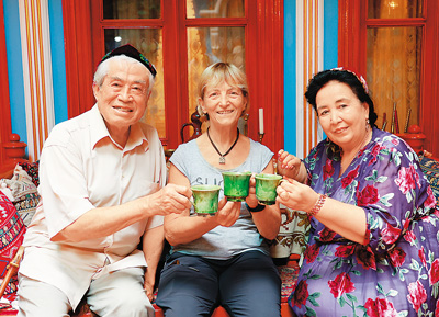 9月8日是维娜从家乡意大利威尼斯出发的第846天。当天,在新疆乌鲁木齐市亚欧风情街上的高加索餐厅,维娜度过了自己的75岁生日。热情洋溢的新疆歌舞、琳琅满目的美食佳肴、真挚友爱的生日祝福……别开生面的生日庆祝活动让维娜深受感染。身披新疆特色的丝绸围巾,她被载歌载舞的维吾尔族姑娘簇拥着,在手风琴声中翩翩起舞。很难想象,舞池中满面春风的她,曾独自穿梭于中亚广袤无垠的沙漠绿洲,也一人攀越过帕米尔高原的崇山峻岭。