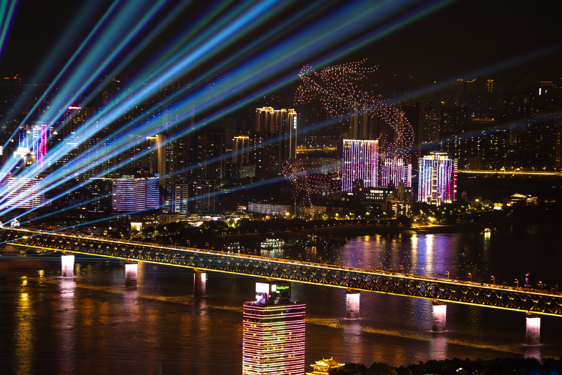 9月14日晚在武汉举办的长江文化艺术季开幕式,以天为幕、以城为景、以长江为舞台,通过光影数字技术,打造了一场科技与文化融合的盛宴。在武汉长江大桥与武汉长江二桥间的长江上空,数千架无人机在短时间内变幻出唐古拉山脉、布达拉宫、金沙江大拐弯、黄果树瀑布、大熊猫、洪崖洞、三峡大坝、岳阳楼、滕王阁、马头墙、南京长江大桥、三潭印月、东方明珠等长江流域特色元素。随后,烟花从江面腾空而起,绽放出璀璨绚烂的长江夜景图。