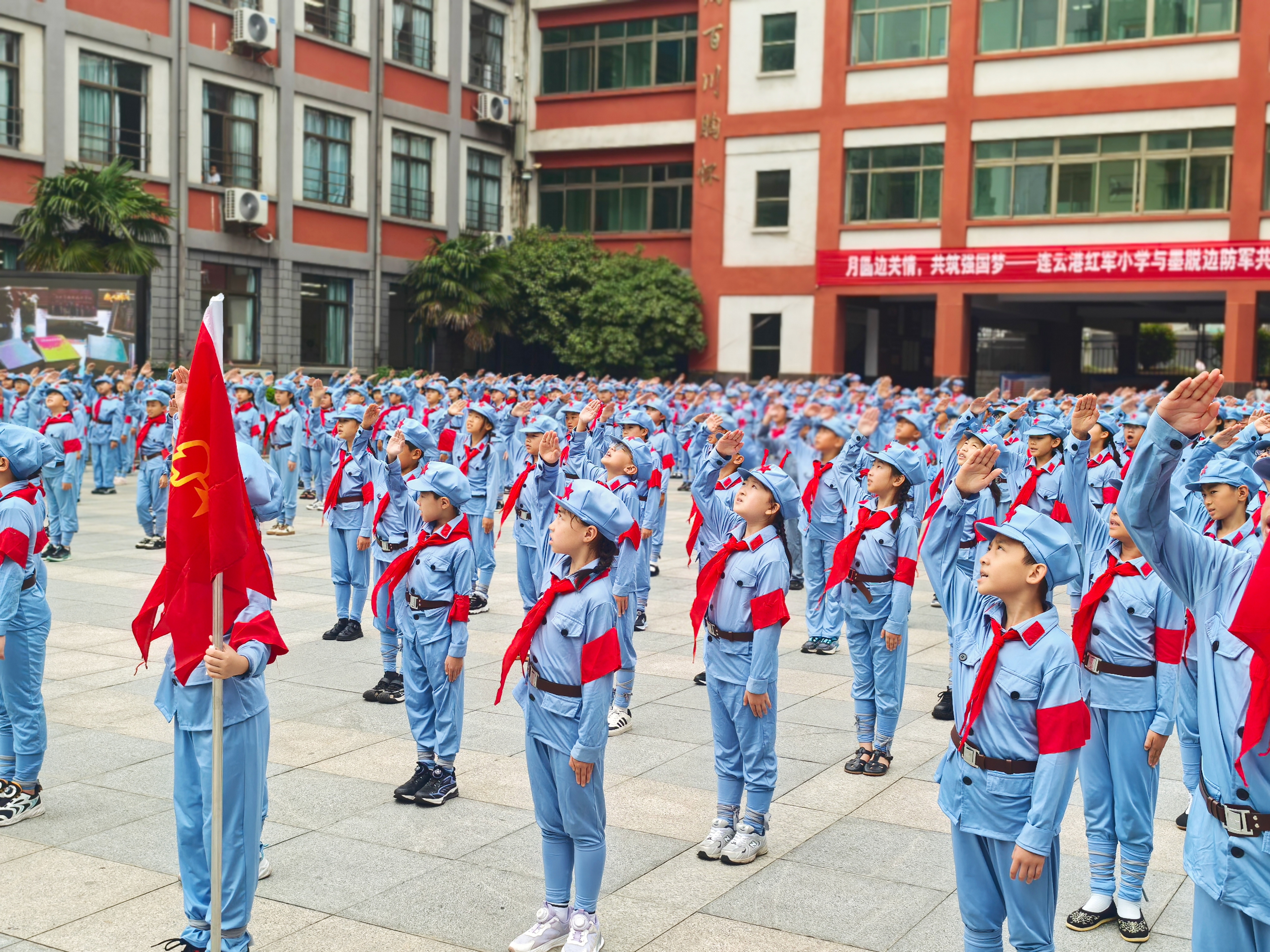 举手、行少先队员礼……孩子们以自己的方式,向解放军叔叔们致以最崇高的敬意。“我要像解放军叔叔们一样,以后做个对国家有用的人!”学生代表王弘轩动情地说。连云港红军小学校长周新霞也表示,师生们能和边防战士一起升旗,意义非凡。学校今后会传承红色基因,教育引导好学生努力学习,为祖国建设添砖加瓦。