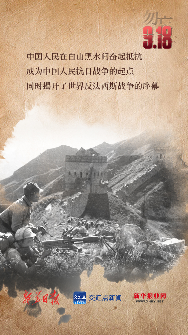 1931年9月18日,九一八事变爆发,中国人民在白山黑水间奋起抵抗,成为中国人民抗日战争的起点。历经14年浴血奋战,中国人民在近代以来第一次取得了完全胜利的民族解放斗争。
