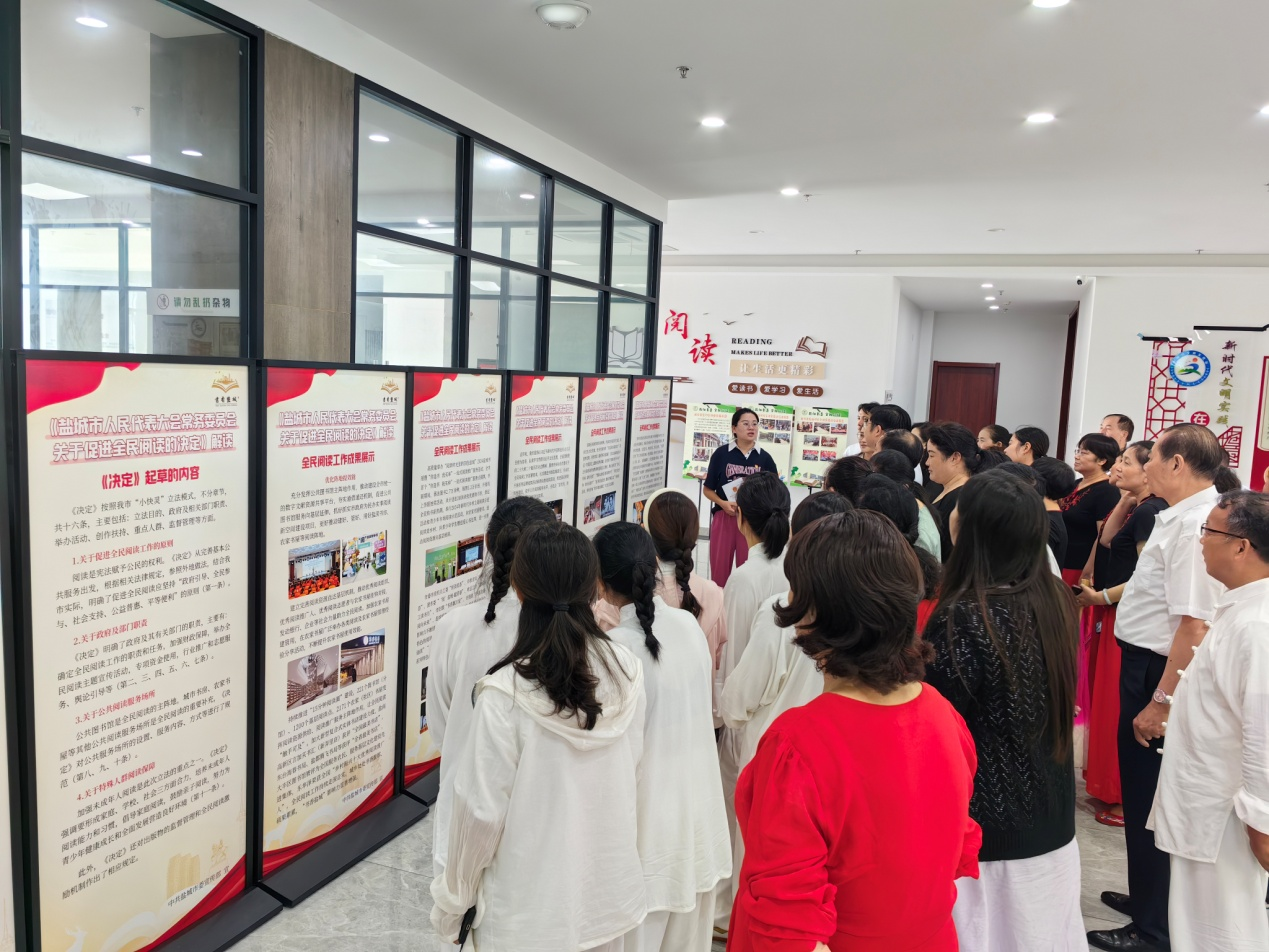 活动伊始,社区书记庄重宣读《盐城市第九届人民代表大会常务委员会公告》,随后引领众人参观《盐城市人民代表大会常务委员会关于促进全民阅读的决定》展览,旨在激发社区居民的阅读热情,营造浓厚的学习氛围。