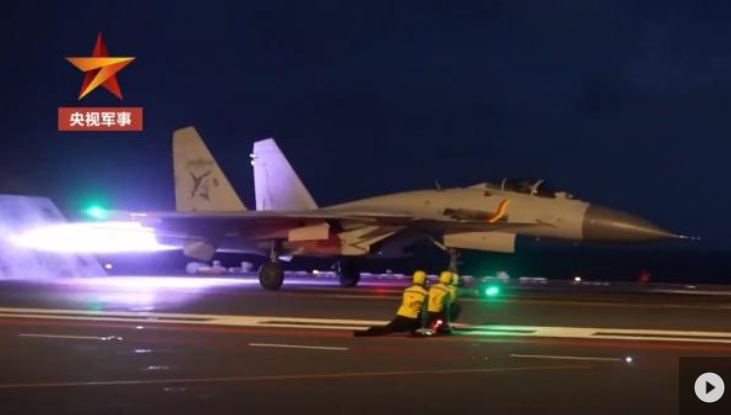 近日,南海某海域,海军山东舰航母编队依托实战化训练,开展新一批飞行员夜间航母资质认证,进一步提升海军舰载航空兵昼夜间全时域作战能力。