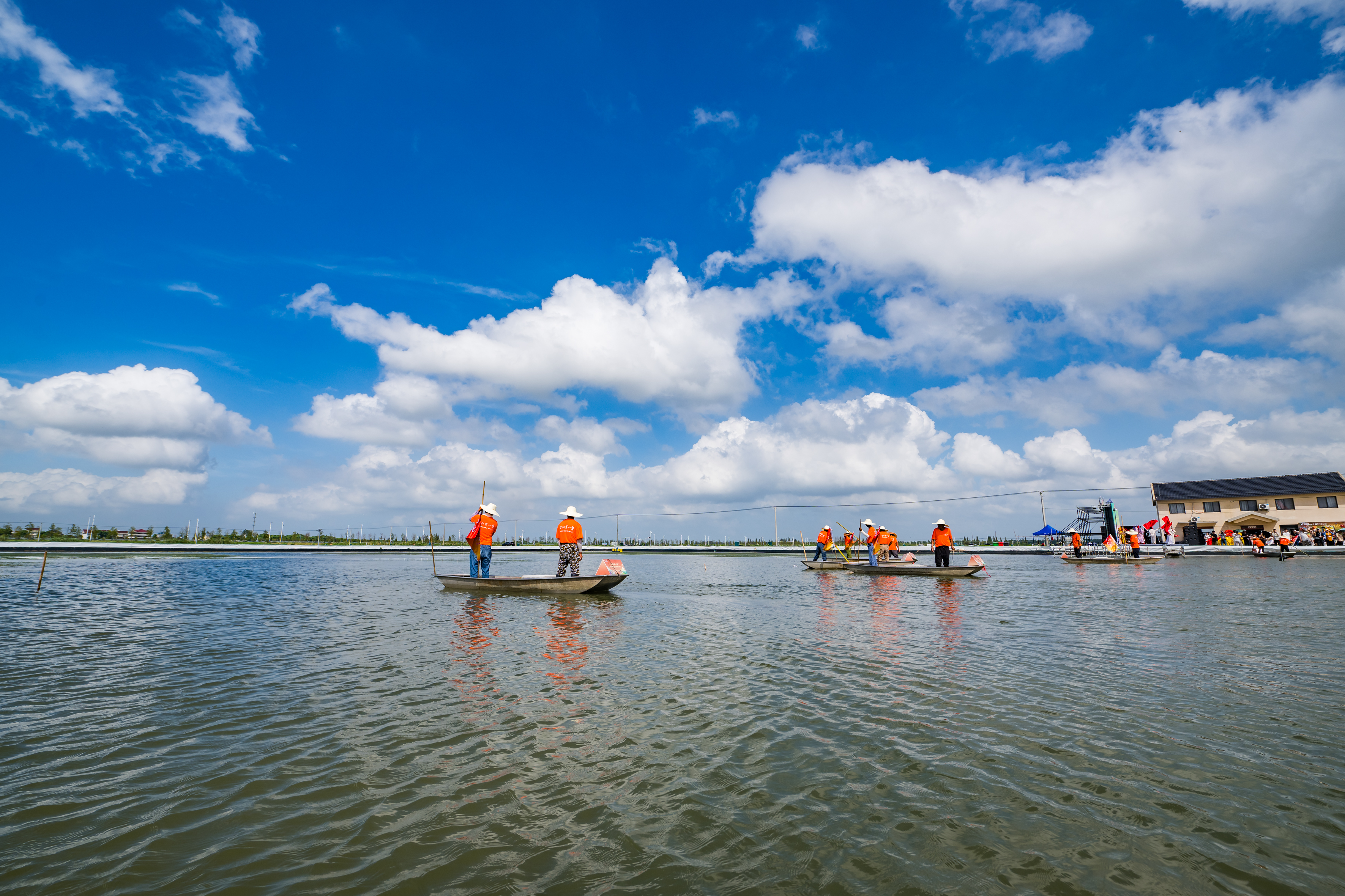 当天的开捕仪式在南京市高淳区砖墙镇的青松水产专业合作联社举行。接到开捕号令后,20艘捕蟹船扬帆起航,蟹农们喊着嘹亮的号子驶入蟹塘。蟹塘两岸,鼓点声中,舞狮队、舞龙队依次上场,随着队员们激情舞动,龙身不断翻腾,为蟹农们加油鼓劲,庆祝着“金秋第一蟹”的起笼。