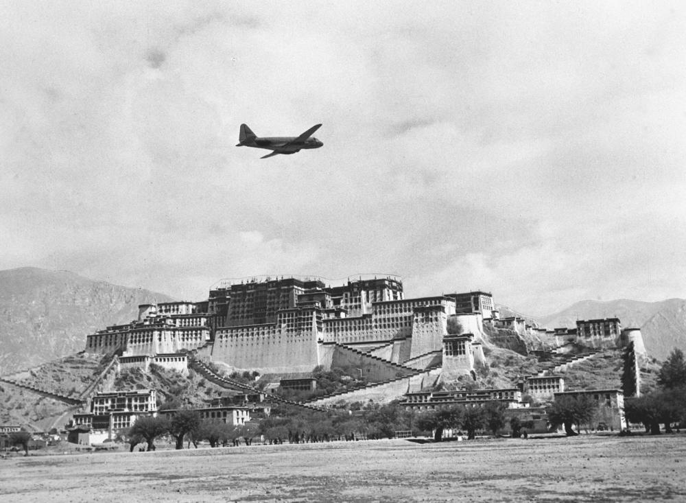 1956年,从北京出发的飞机越过了重重雪山,飞临拉萨布达拉宫上空。新华社记者钱嗣杰摄