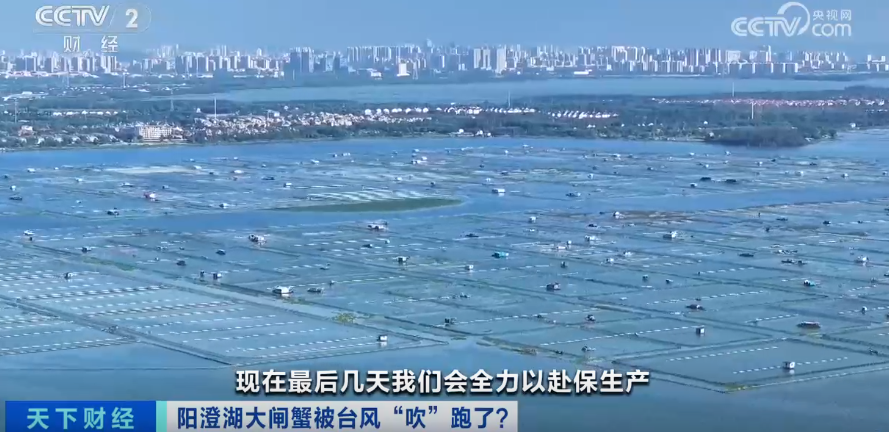 江苏省苏州市阳澄湖蟹农 王振国:成蟹不错,现在是第五次退壳,硬度还可以,心里踏实了,台风我们也扛过来了。我们家的螃蟹好着呢,损失不算很大,放心,走起!