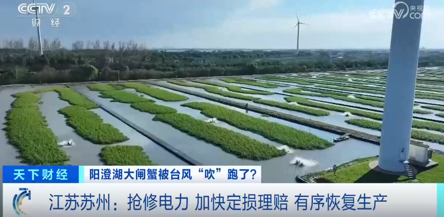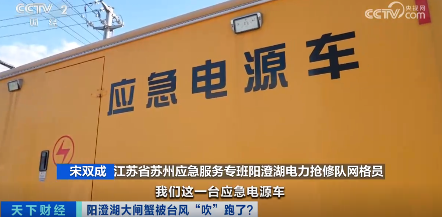 江苏省苏州应急服务专班阳澄湖电力抢修队网格员 宋双成:我们这一片蟹田已经恢复供电,这一台应急电源车足以满足这一片蟹田的应急供电。这片蟹田总共有440亩,我们是采取先复电后抢修的方式,优先保障蟹田的供电。