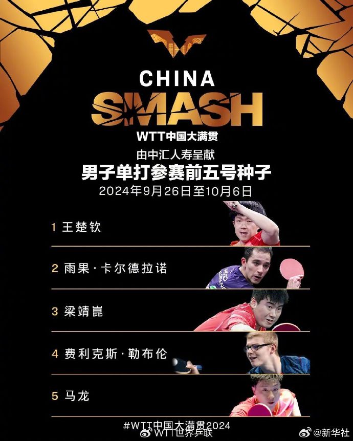 刚刚,WTT世界乒联公布WTT中国大满贯2024参赛全阵容。本次比赛将于9月26日至10月6日在北京石景山首钢园举行。