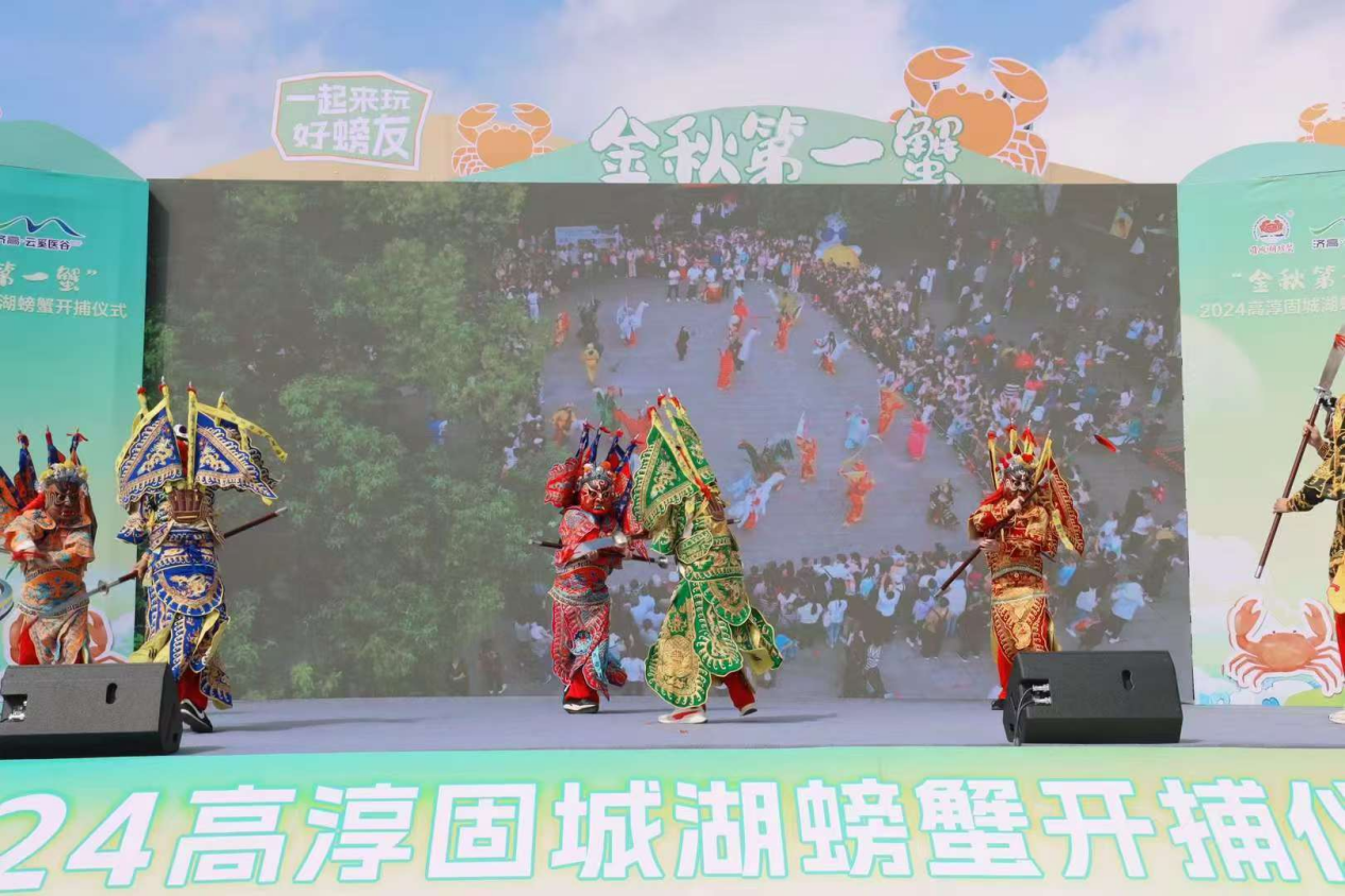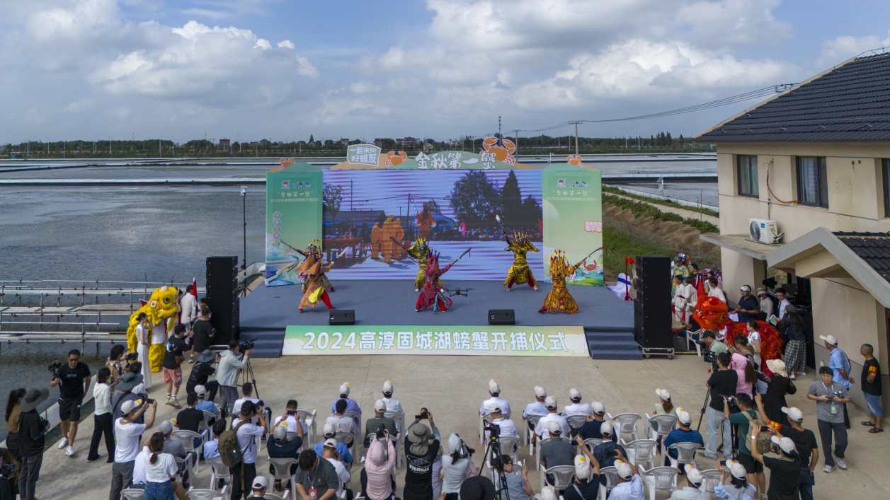“抓螃蟹喽!”9月19日上午,在南京市高淳区永胜圩内,固城湖螃蟹鸣锣开捕金秋“第一蟹”,来自该区古柏街道的省级非遗“跳八恺”首次亮相开捕现场,与蟹共舞庆丰收。