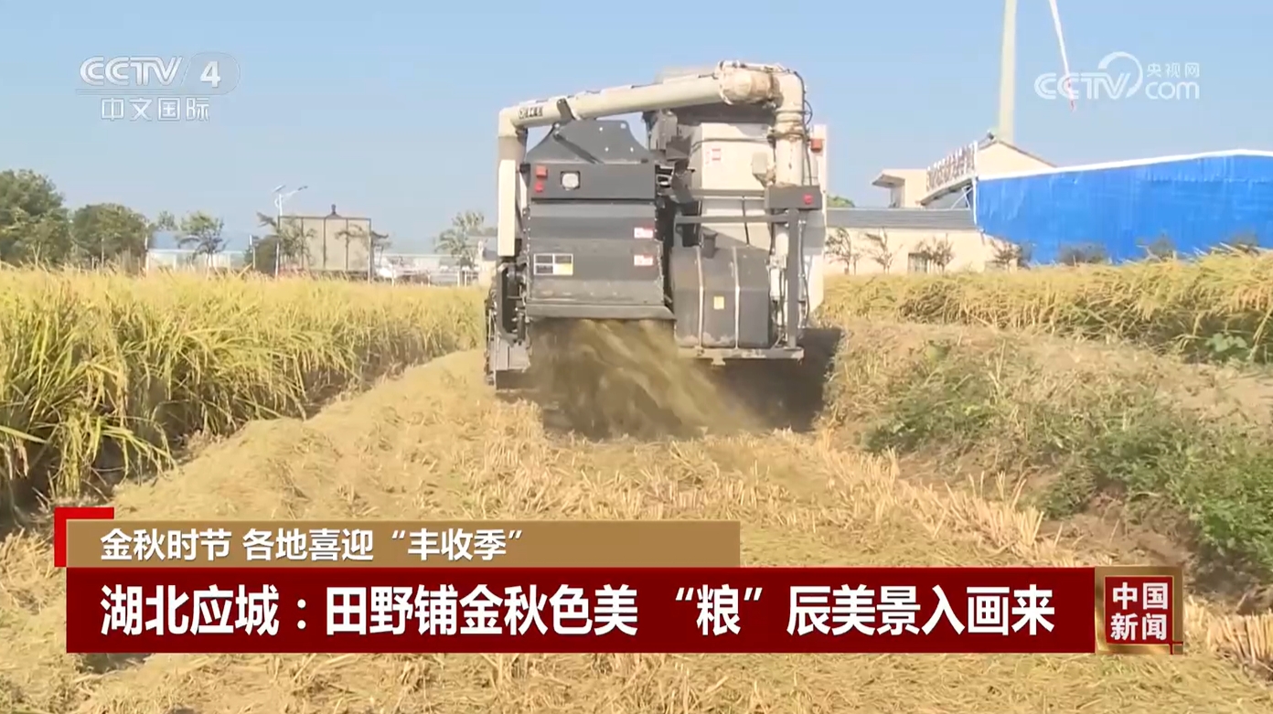 湖北应城:田野铺金秋色美 “粮”辰美景入画来