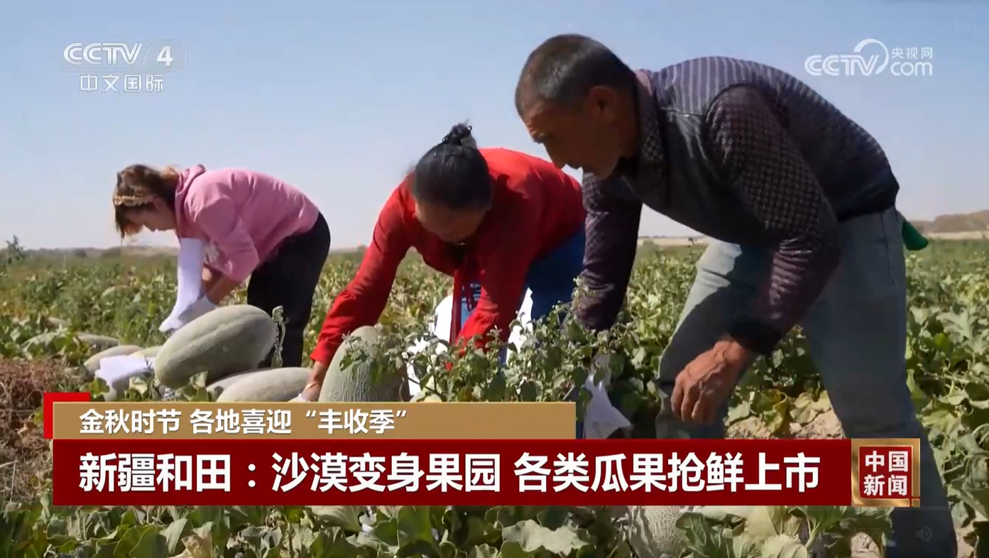 金秋时节也是各式各样新鲜瓜果上市的季节。新疆和田民丰县安迪尔乡,7500亩安迪尔甜瓜陆续成熟采收。洛浦县在沙漠中种植的千亩蟠枣也迎来采摘季,一颗颗色泽鲜亮的蟠枣挂满枝头。