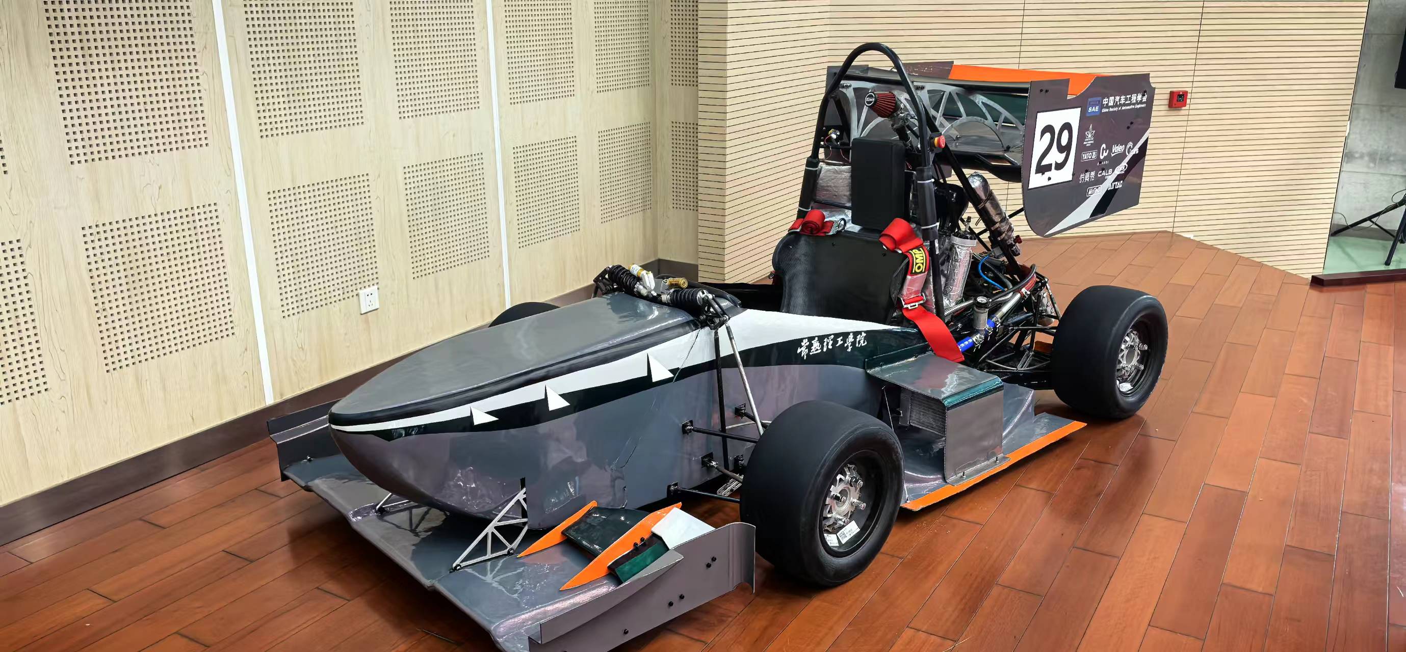 现场停放着一大一小两辆赛车,其宽大的轮胎、高耸的尾翼,和印象中的方程式赛车的造型毫无二致。“这辆大一些的是油车,另一辆是电车。”CIT车队指导教师王巍介绍,整车的设计、加工、装配、调试完全由学生自主完成。