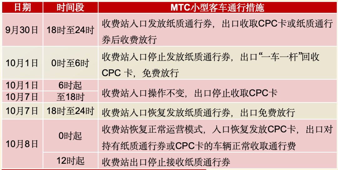 通行政策——小型客车免费通行