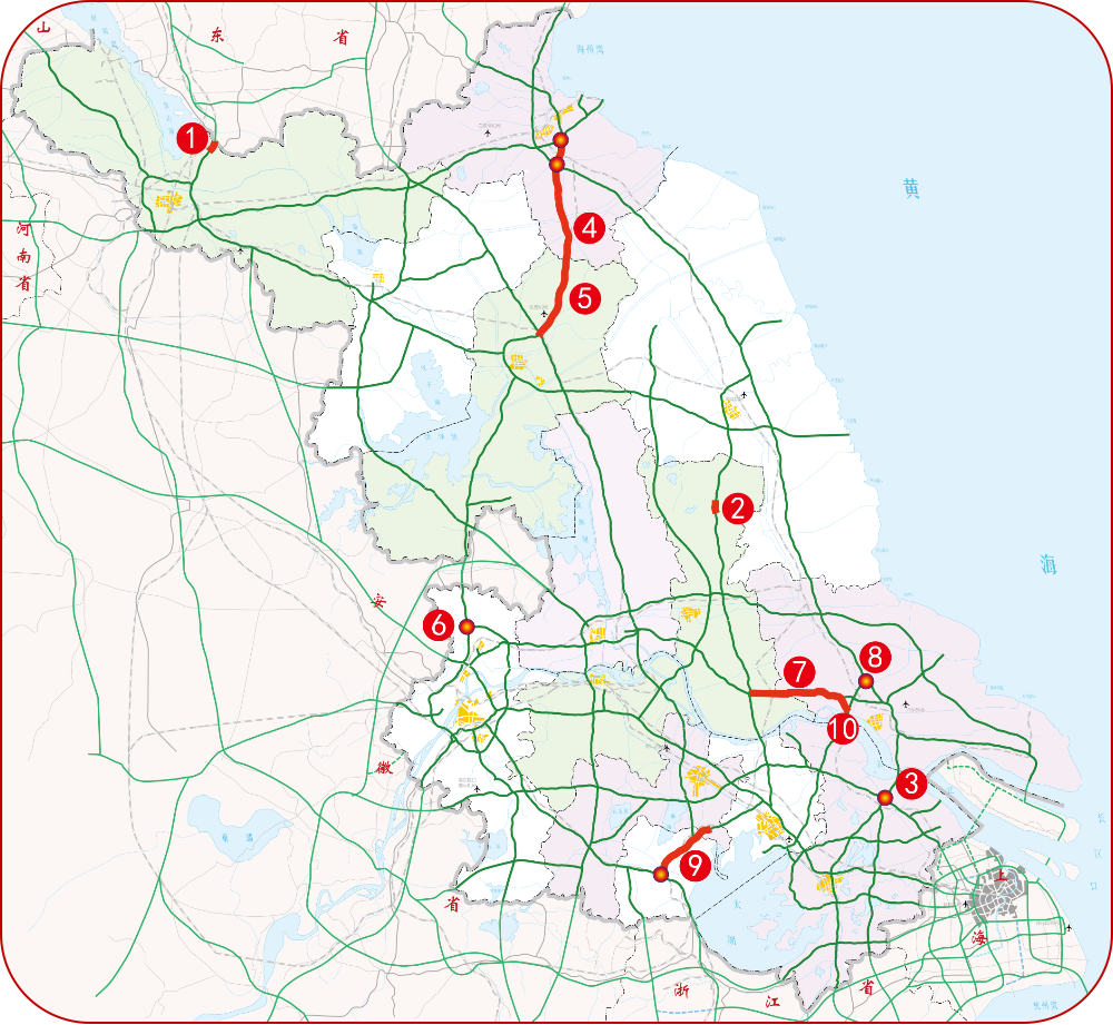 国庆期间,跨省、跨区域长距离出行比例较平日明显增加,预计江苏和上海、浙江、安徽、山东四省一市区域高速公路省界出入口较平日激增,省界日均流量将达到140.0万辆次,较平日增长约42%,其中苏皖省界日均跨省流量突破50万辆次。