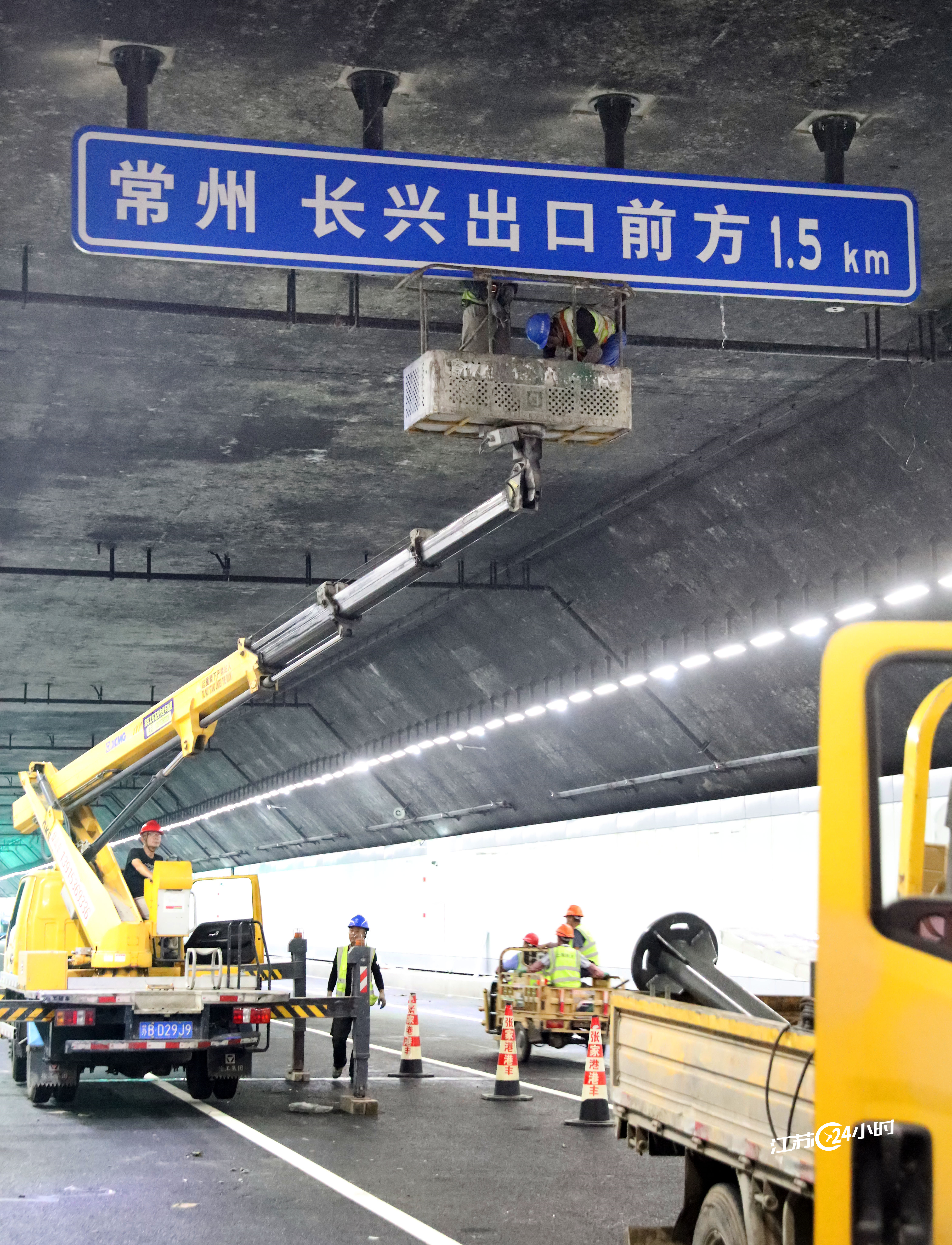 (特约摄影丁焕新 13:25摄 18:45上线)9月26日,在宜兴马山快速通道竺山湖隧道周铁段,工程技术人员为通车做准备。竺山湖隧道是341省道无锡马山至宜兴周铁段的节点工程,隧道下穿竺山湖,全长7.81公里。