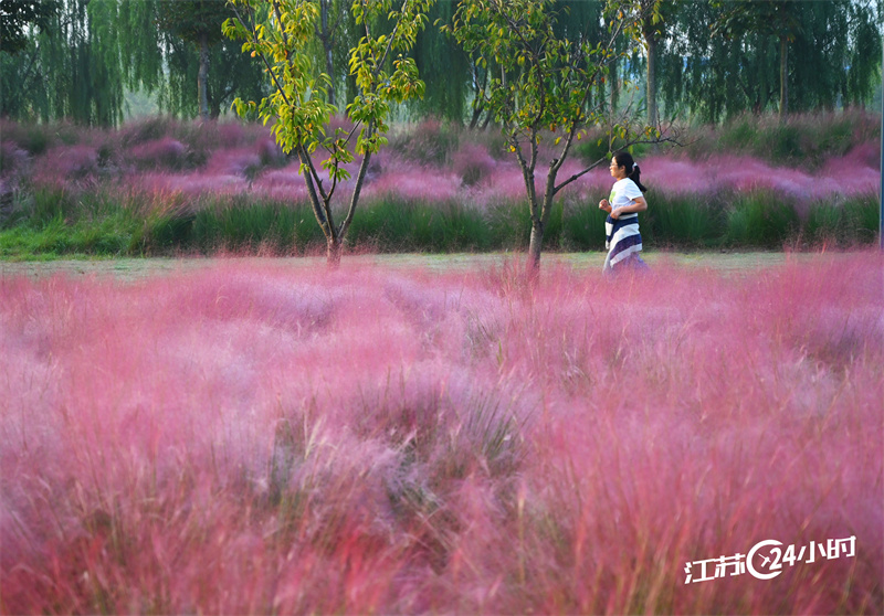 (特约摄影 洪星 7:23摄 8:30上线)9月26日,睢宁县徐沙河景观带的粉黛乱子草进入观赏佳期,吸引市民前来观赏,尽享美好秋色。