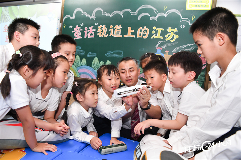 (记者 邵丹 14:38摄 16:00上线)9月26日,全国劳动模范、中国铁路上海局南京东机辆段动车组司机殷学斌来到南京师范大学附属小学,生动开讲“轨道上的江苏”精彩故事。殷学斌结合20年铁路一线工作实际,介绍近年来江苏铁路建设的经典项目。