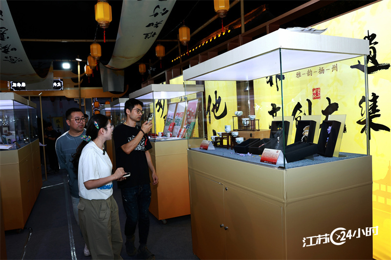 (特约摄影 沈扬生 25日20:15摄 7:55上线)9月25日晚,扬州市,“妙聚他山”非遗文创大集在东关街馥园开市。据了解,市集汇聚了本土100多家非遗企业,涵盖漆器、玉器、刺绣等传统手工艺门类,让市民和游人感受非遗之美。