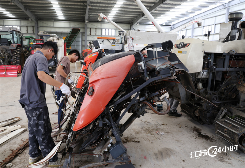 (特约摄影 邵金祥 10:17摄 11:45上线)9月26日,常熟市古里镇坞坵村农机库,技术人员正在对收割机进行检查维修保养,消除安全隐患,助力秋收。