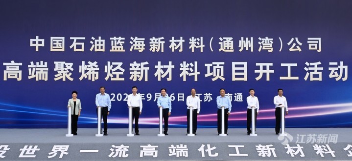 9月26日,中国石油蓝海新材料项目开工活动在南通通州湾示范区举行。省委书记信长星、中国石油天然气集团董事长戴厚良出席。省长许昆林、中国石油天然气集团总经理侯启军致辞。