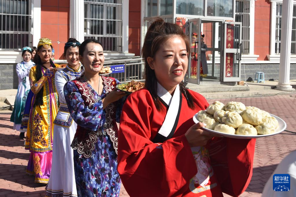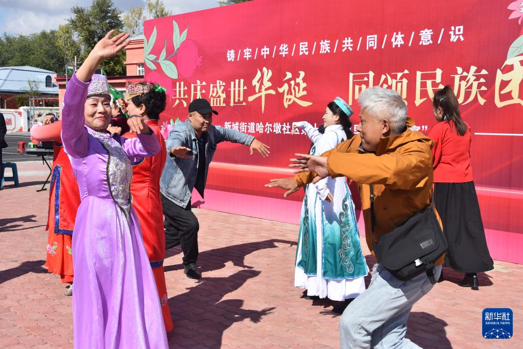 开阔的社区大院内,数十名各族群众围坐长桌旁,一边品尝各色美食,一边欣赏居民的精彩表演,欢声笑语不时传出。这是新疆塔城市新城街道哈尔墩社区举行的“邻里节百家宴”,各族群众展示民族歌曲,跳起欢快的舞蹈。