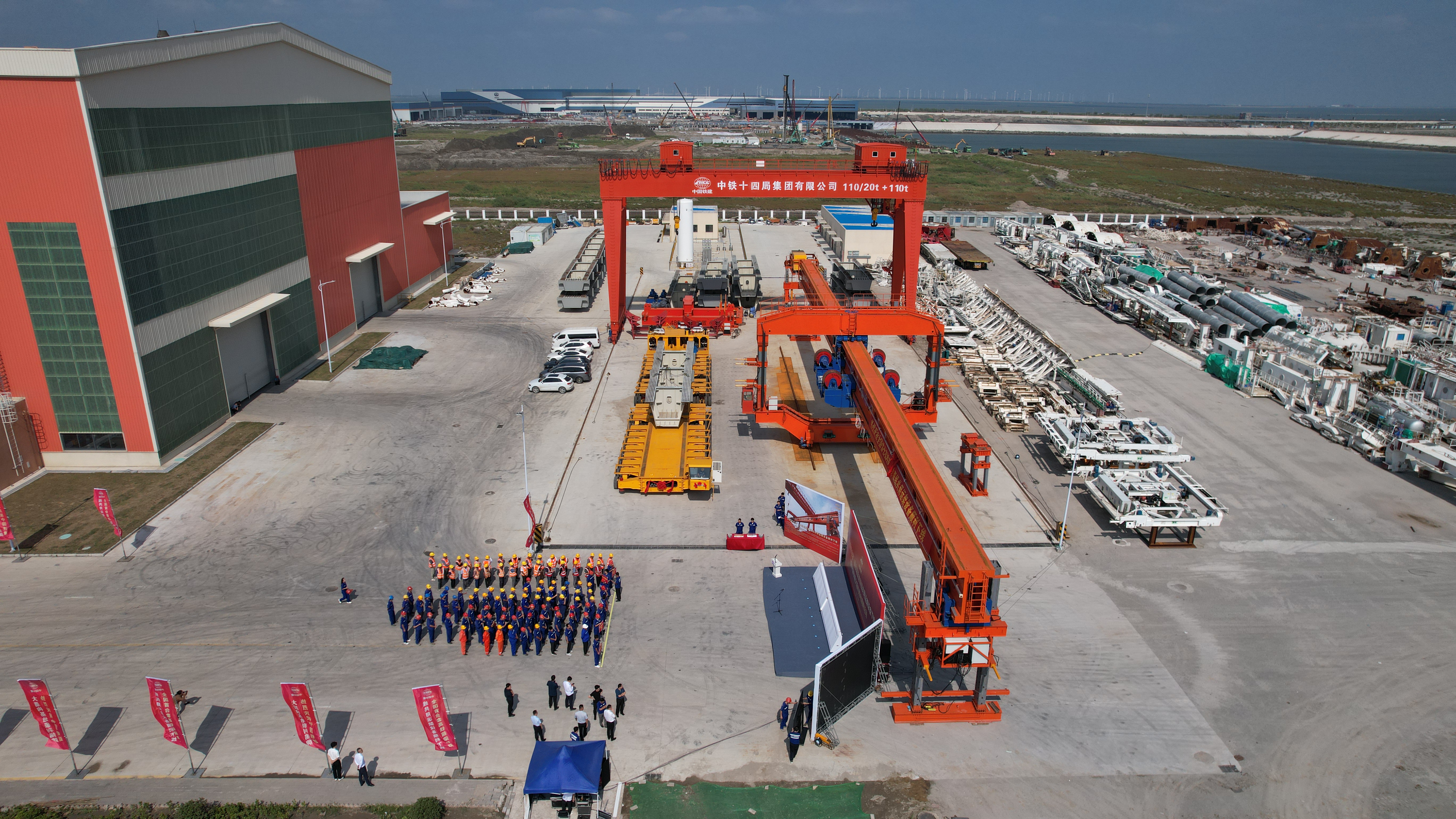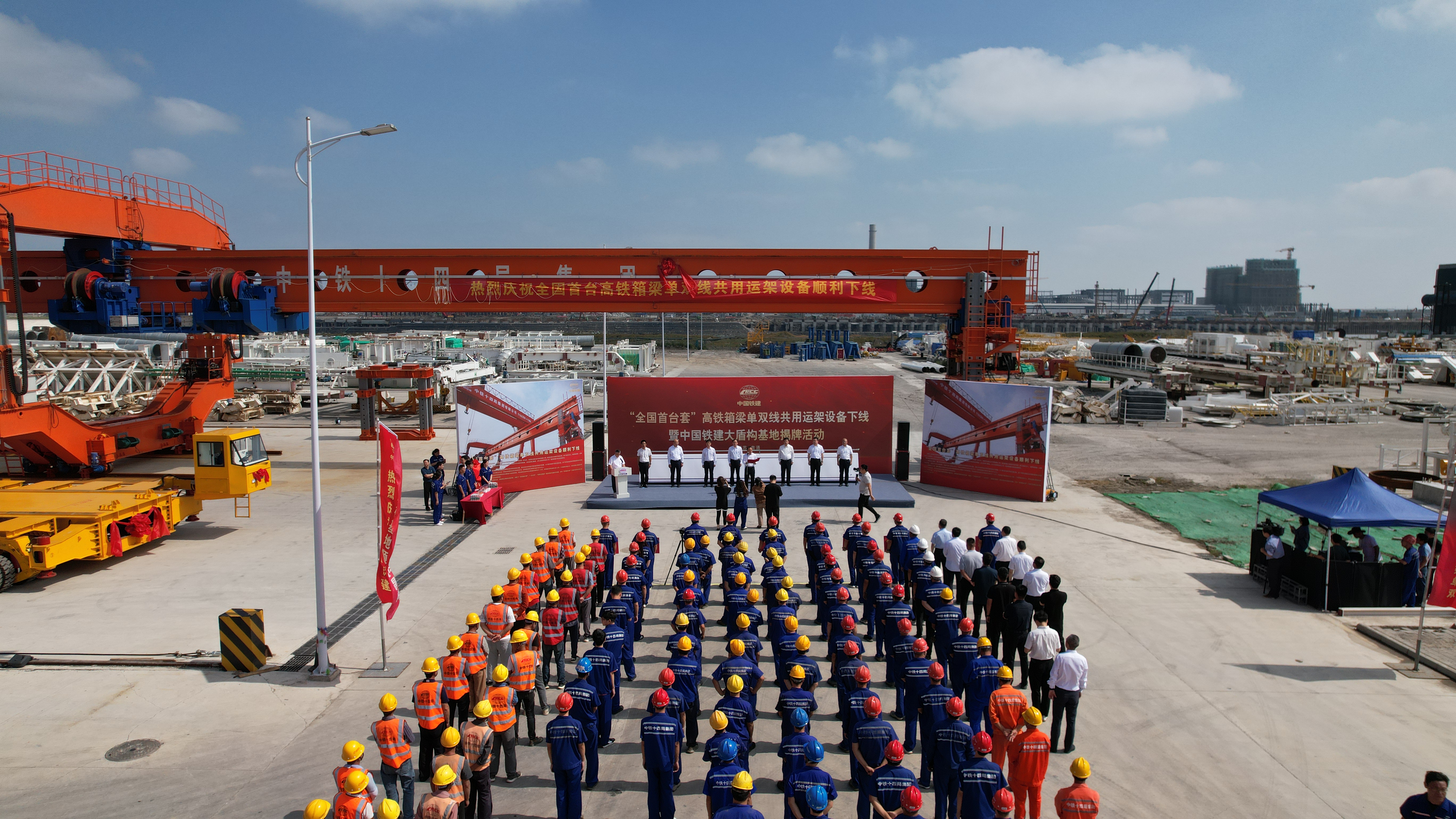 交汇点讯 9月28日,由中铁十四局装备公司自主研发的高铁箱梁单双线共用运架设备在通州湾示范区完成吊装,标志着全国首台(套)高铁箱梁单双线共用运架设备顺利下线,填补了国内铁路运架设备“单双线共用”的空白。