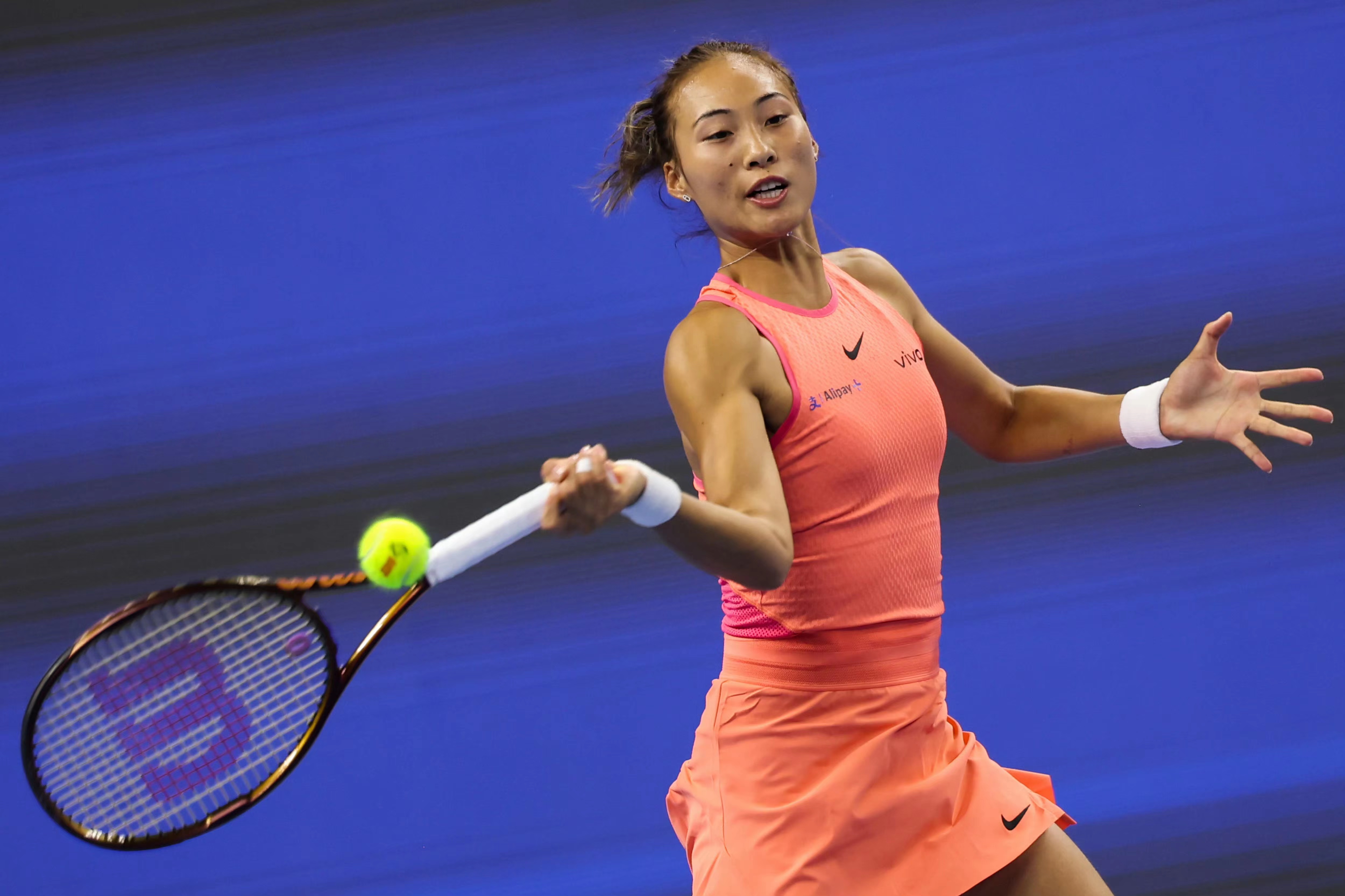 9月28日,在2024中国网球公开赛女单第二轮比赛中,赛会5号种子、中国球员郑钦文状态出色,以6-1、6-1轻松战胜世界排名第71位的俄罗斯球员拉希莫娃,取得中网开门红。全场比赛郑钦文发球状态在线,进攻手感火热,没有被对手拿到一个破发点。