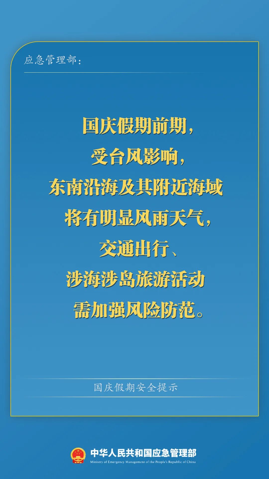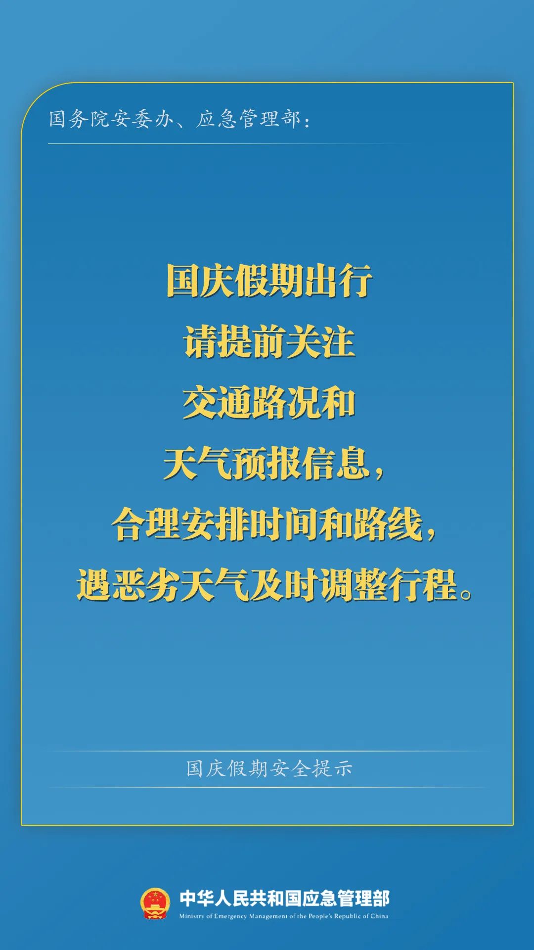 注意安全!应急管理部发布国庆假期安全提示