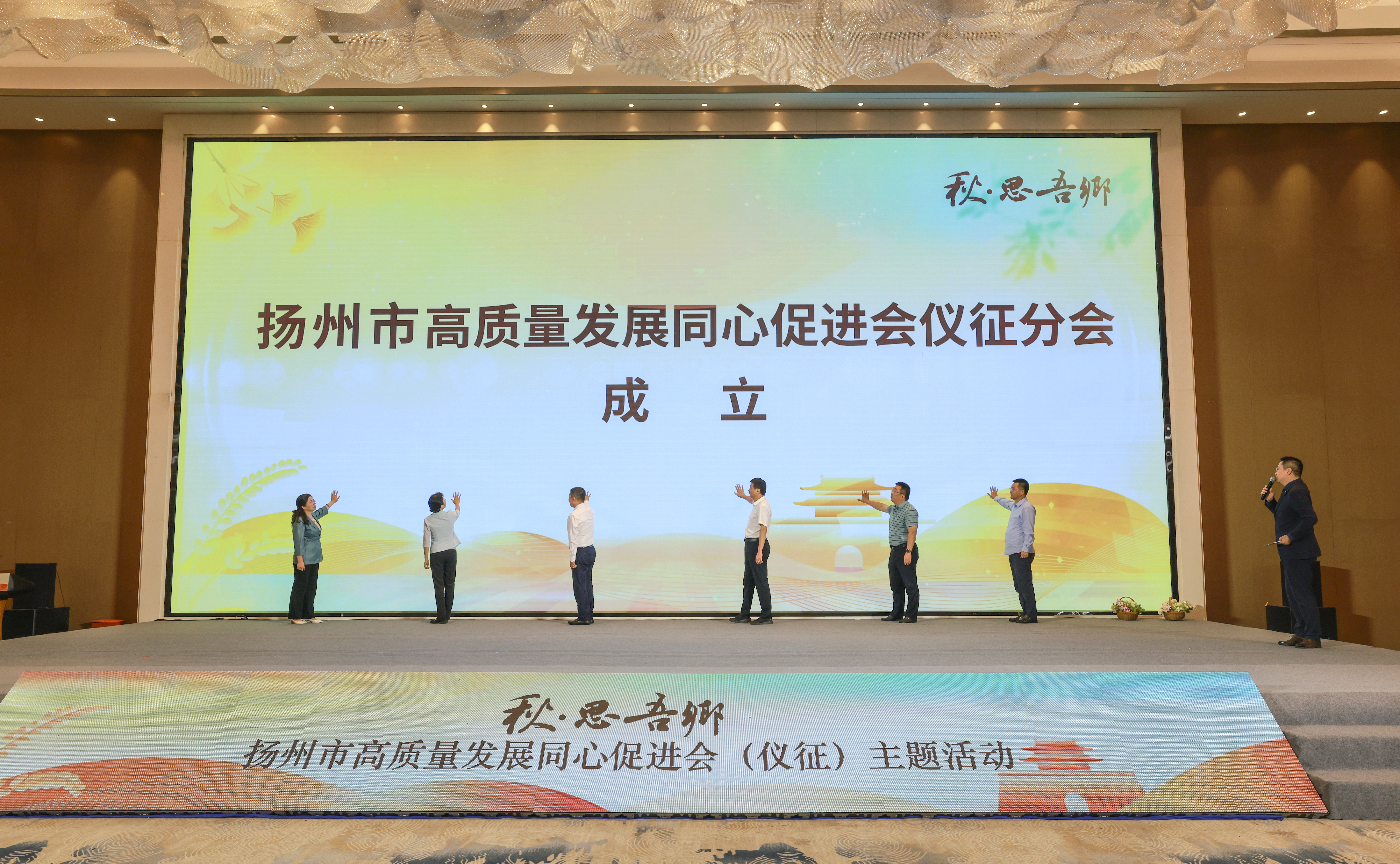 春晖聚贤游子意,扬子同舟故乡情。在国庆佳节即将到来之际,为充分发挥在外仪征人在助力家乡高质量发展中的优势和作用,为推动中国式现代化仪征新实践广泛集聚新动能,9月29日下午,“秋•思吾乡”扬州市高质量发展同心促进会(仪征)主题活动在仪征枣林湾成功举办。扬州市委常委、统战部部长丁四海,仪征市委书记孙建年出席活动并致辞。省委统战部宣传处处长王宜峰,扬州市委统战部常务副部长吉琳,扬州市社会主义学院副院长茅建刚,仪征市委副书记、统战部部长胡彩云,仪征市政协副主席、工商联主席严峻及百余名仪征在外优秀人士、嘉宾代表参加活动。
