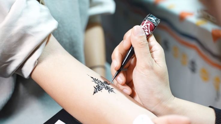 “我以前学画画,毕业后做过设计。偶然在网上结识到手绘师傅,觉得特别有趣,学成以后就来到里运河边市集摆了摊位。”小艾说,“海娜手绘是一种古老的身体装饰艺术,最早在印度等地区比较盛行。比如印度人结婚,在新娘手上或身上画大象,表达祝福的意思。”