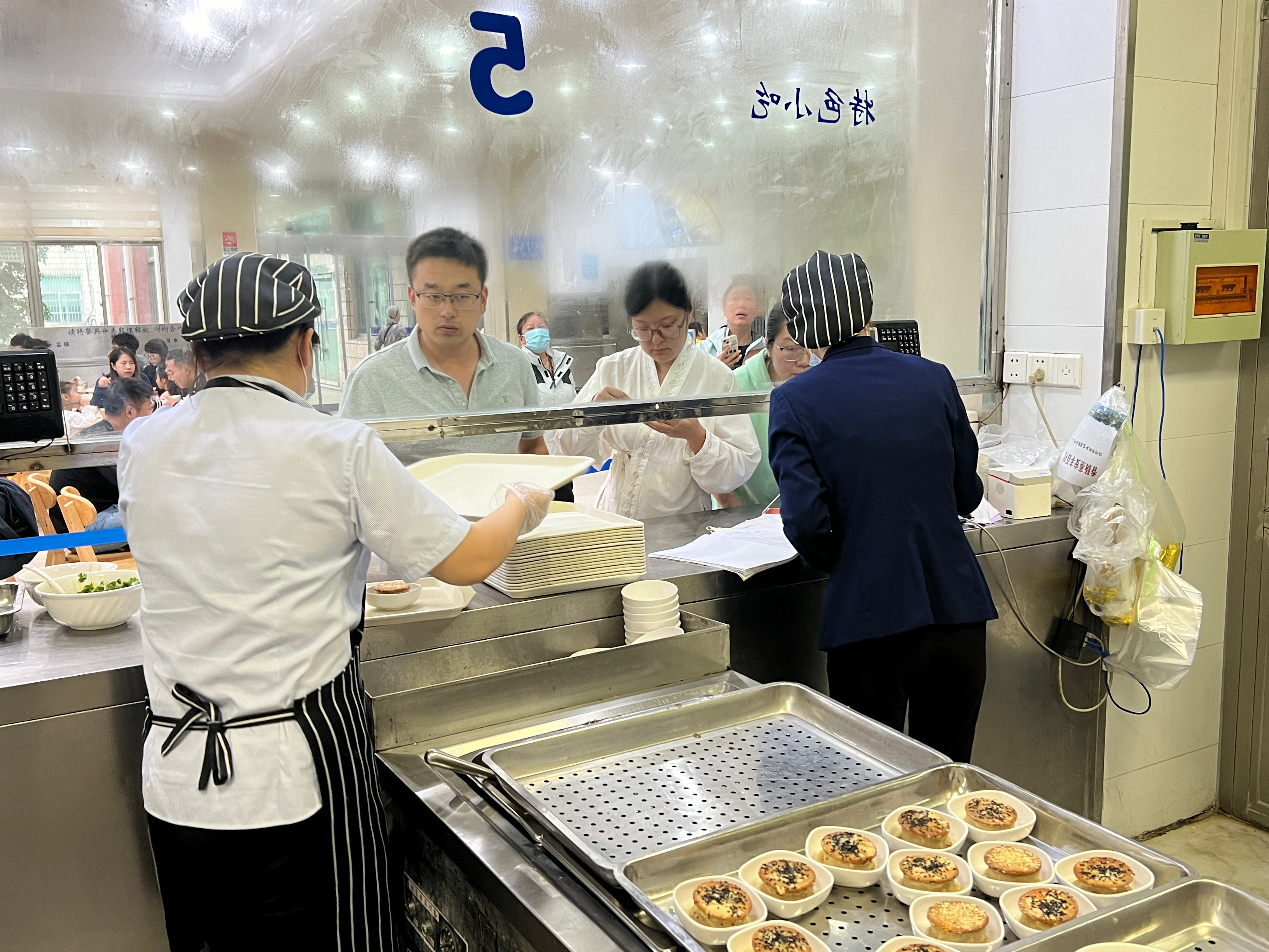 交汇点讯 10月6日,国庆假期进入倒数第二天。上午八时,扬州市政府食堂内,20多名后厨工作人员便开始忙碌起来,从食材分拣清洗到改刀制作加工,再经过煎、炒、烹、炸、煮、熬、炖等烹饪手法后,一道道色香味兼具的淮扬特色菜肴和扬州特色小吃被装盘放置在窗口。时间刚到饭点,前来就餐的游客便纷至沓来,队伍一直排到了食堂门外。
