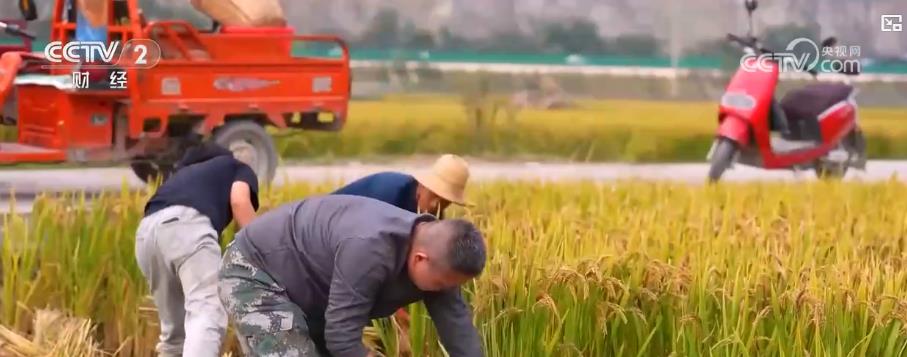眼下,甘肃陇南栽种的水稻也陆续进入收割期。当地农户采取人工加机械的方式确保颗粒归仓。