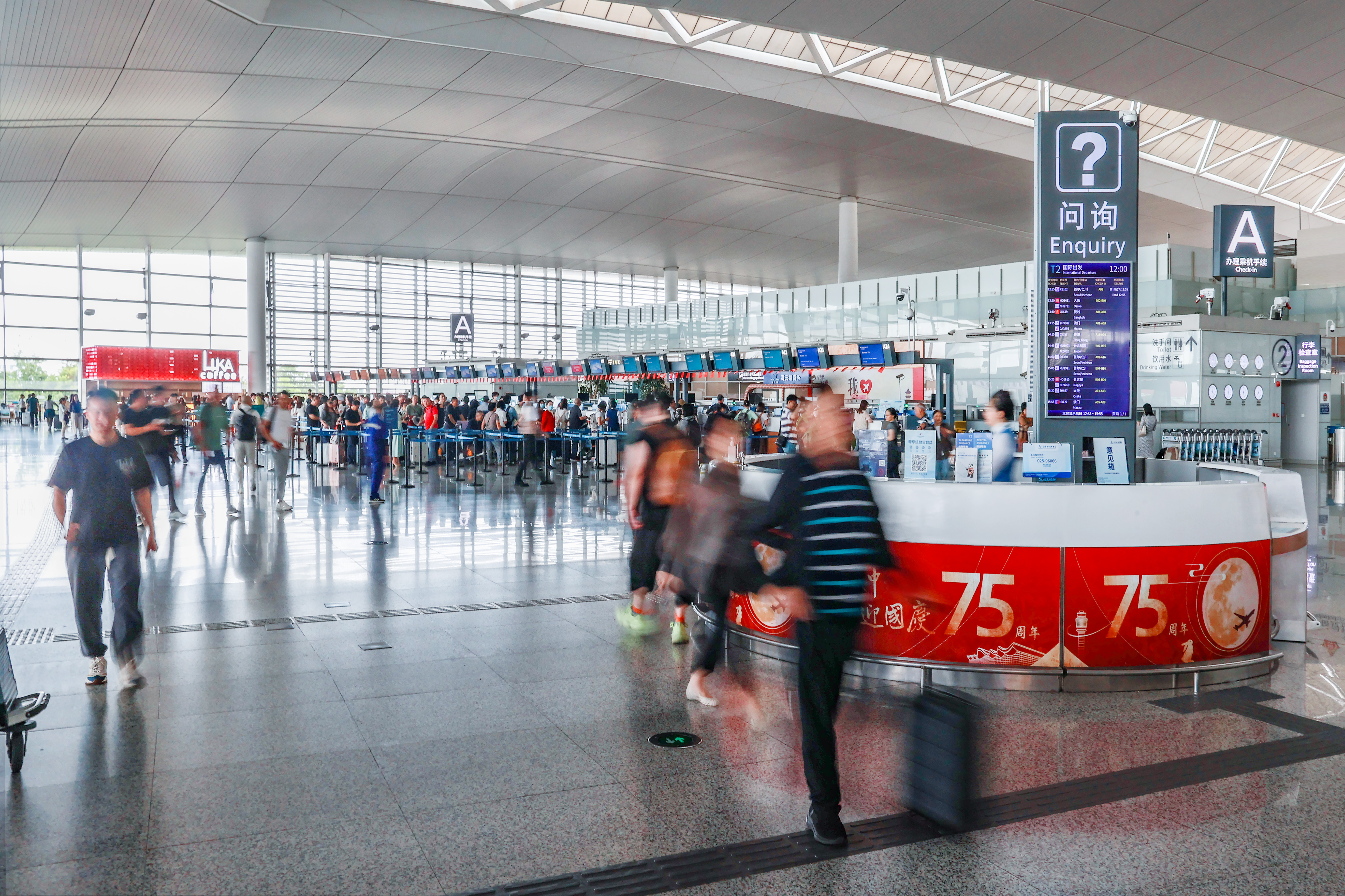 这个国庆假期,南京禄口国际机场日均客流量约10万人次。机场文旅咨询服务中心为旅客提供实时旅游信息与地图,让行程更顺畅。节日期间,机场以“中国红”装点航站楼,天下文枢牌坊、民国风情街、金陵小吃……实力圈粉,让旅客无论抵达或出发,都能先一步领略城市魅力和文化底蕴。
