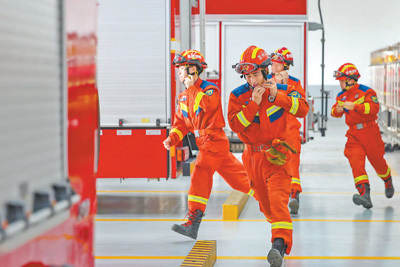 在巡护和宣传之外,思茅中队时刻处于战备状态。除了日常的体能训练,消防员们持续进行灭火技能训练和地震应急演练。“报告,装备齐全,可以登车。”随着黑夜中警报拉响,消防员闻令而动。集合、检查救援装备,不到5分钟,消防车便开出中队的院子。“现在我们的装备不断更新,战备意识也更强了。”王思龙说,“作为森林消防员,过节不忘备战,时刻准备着,才能守驻地平安、护百姓安宁。”