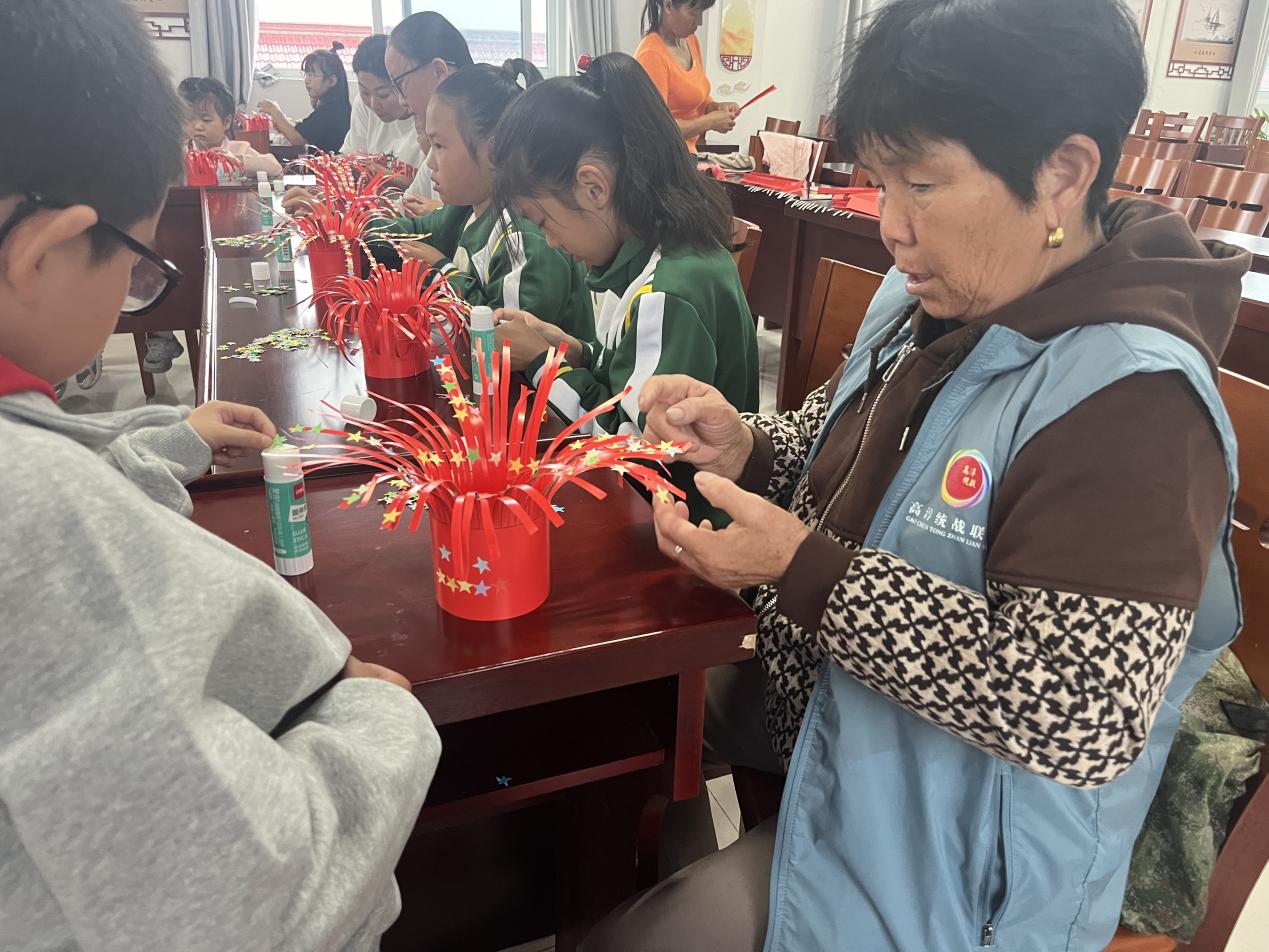 接下来,在志愿者的指导下,大家拿起剪刀和红纸,开始创作属于自己的满天星花篮。红纸在巧手中翻飞,不一会儿,一朵朵精致的满天星便跃然纸上,再经过组合与粘贴,一个个充满创意和心意的花篮便诞生了。这些花篮不仅展现了孩子们的天真烂漫,也寄托了侨眷们对祖国的深情厚谊。在活动的最后,砖墙镇隆兴村还安排了丰富多彩的互动环节,如爱国知识问答、传统游戏体验等,让孩子们在游戏中学习,在互动中增进了解。对于侨眷而言,这些活动不仅让他们感受到祖国的温暖,也加深了他们对统战工作的理解和认同。