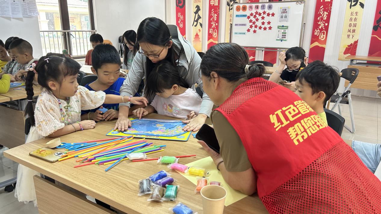 活动伊始,孩子们被一系列冰川与河流相关的图片卡片深深吸引,红色管家志愿者为大家详细展示了冰川的形成过程,并解释了冰川融化后如何形成河流,以及河流对周围生态环境的深远影响。当天,孩子们还参与了河流路径拼图游戏,他们使用黏土在板上发挥创意亲手制作河道,并通过冰块融化的实验,模拟了冰川融化变为河流的真实情境。这一环节不仅激发了孩子们的学习兴趣,也让他们对河流与冰川的关系有了更加直观和深刻地理解。