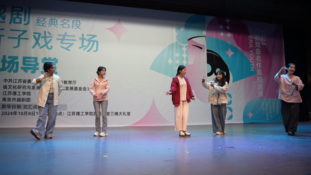 越剧以其独特的魅力,深深地吸引着江苏理工学院的师生们。一些学生在演出开始前,还积极参与到与演员的导赏互动交流中,表达了他们对越剧的喜爱和对传统文化的向往。