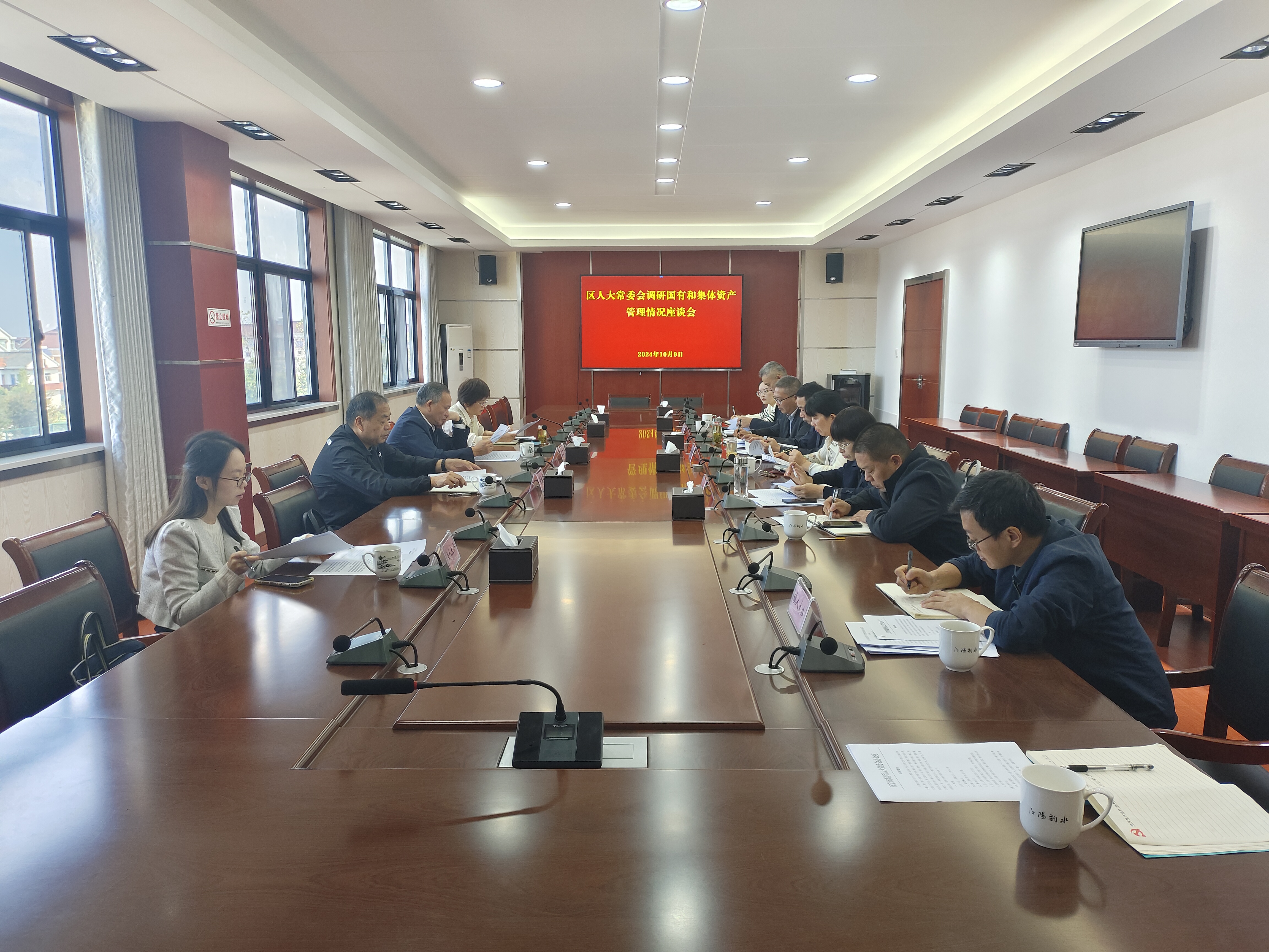 座谈会上,阳江镇就国有资产管理情况作专题报告,详细介绍了企业和行政事业性国有资产、国有自然资源资产、镇村集体资产管理情况以及存在的主要问题和下一步工作举措。区财政局、农业农村局分管负责同志结合各自职能分别补充汇报。调研组就国有资产管理、处置、收益、风险控制等方面内容,和与会人员进行了深入交流讨论,并提出了意见建议。王主任一行对我镇前期国有资产管理工作成效表示充分肯定,并对进一步提升国有资产管理水平提出要求。