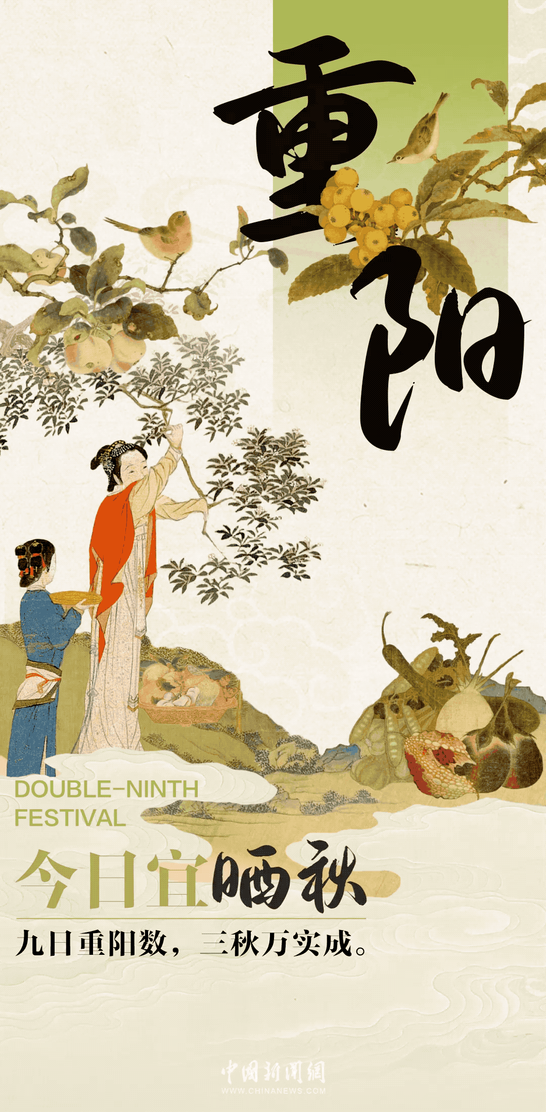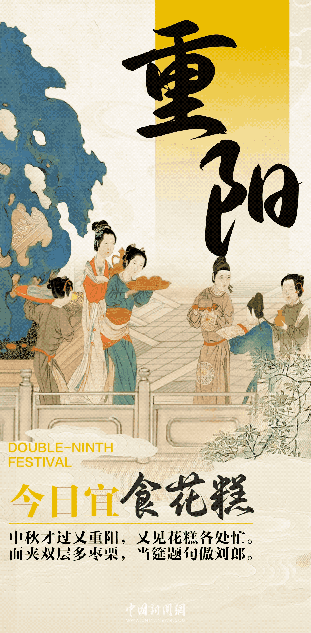 登高望远,秋意渐浓,转眼又重阳。作为中国传统节日,重阳节流传至今已有千年,在农历九月初九这一天,有登高、赏菊、插茱萸、食花糕等习俗。在满园菊花金黄里,一起欣赏古人的重阳雅韵。今日重阳,宜__________