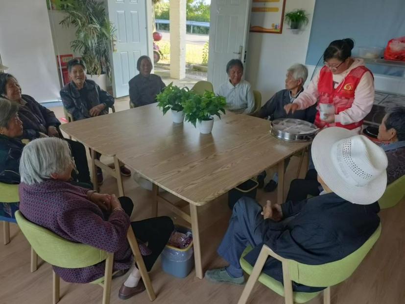 米酒汤圆熬好后,志愿者们把汤圆逐一送到老人们手中。老人们围坐在一起,品尝着米酒和汤圆,那份由内而外的幸福感溢于言表。