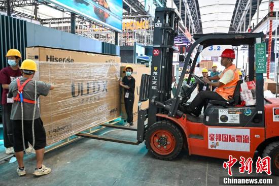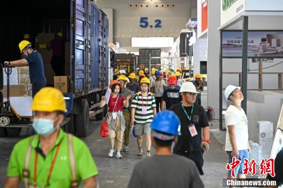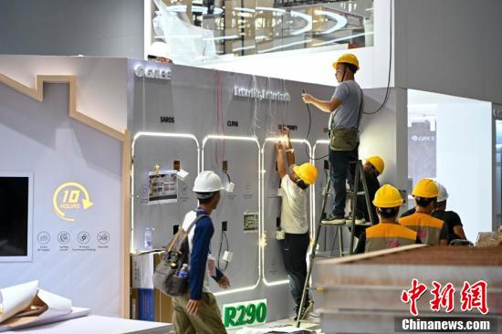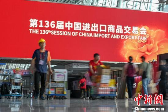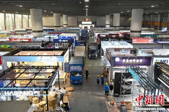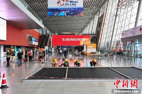 10月13日,广东广州,航拍布展中的广交会展馆。以“服务高质量发展,推进高水平开放”为主题的第136届广交会将于10月15日至11月4日在广州分三期举办,展览总面积155万平方米,展位总数7.4万个,设55个展区、171个专区,线下展参展企业超3万家。(无人机照片)