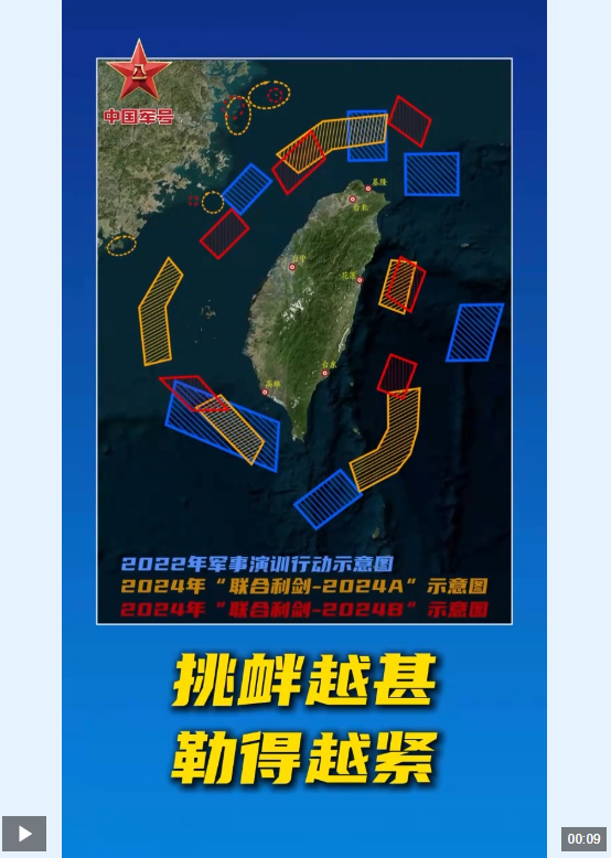 挑衅越甚,勒得越紧,捍卫国家主权、维护国家统一!戳视频,看解放军3次围岛示意图↓