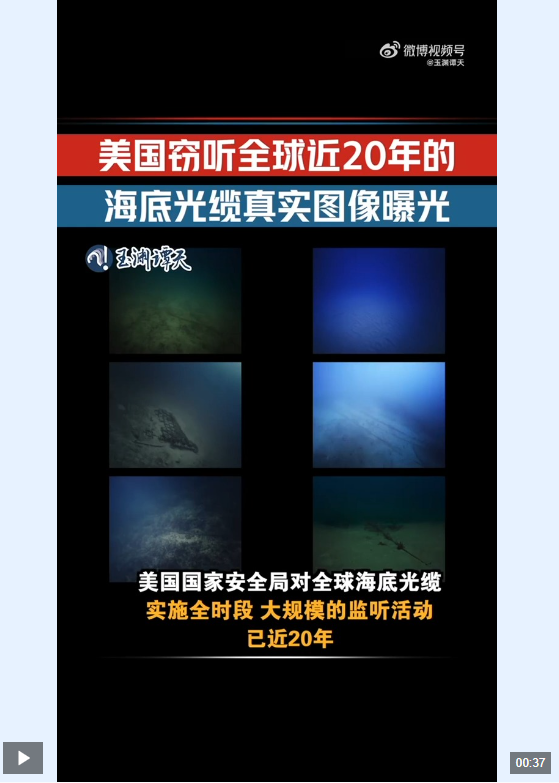10月14日,我国网络安全机构发布专题报告,进一步揭露了美国针对中国等国的间谍窃听窃密活动。其中,美国对全球海底光缆实施全时段、大规模的窃听活动已近20年。戳视频,看美国经营20年的全球窃听光缆长什么样?
