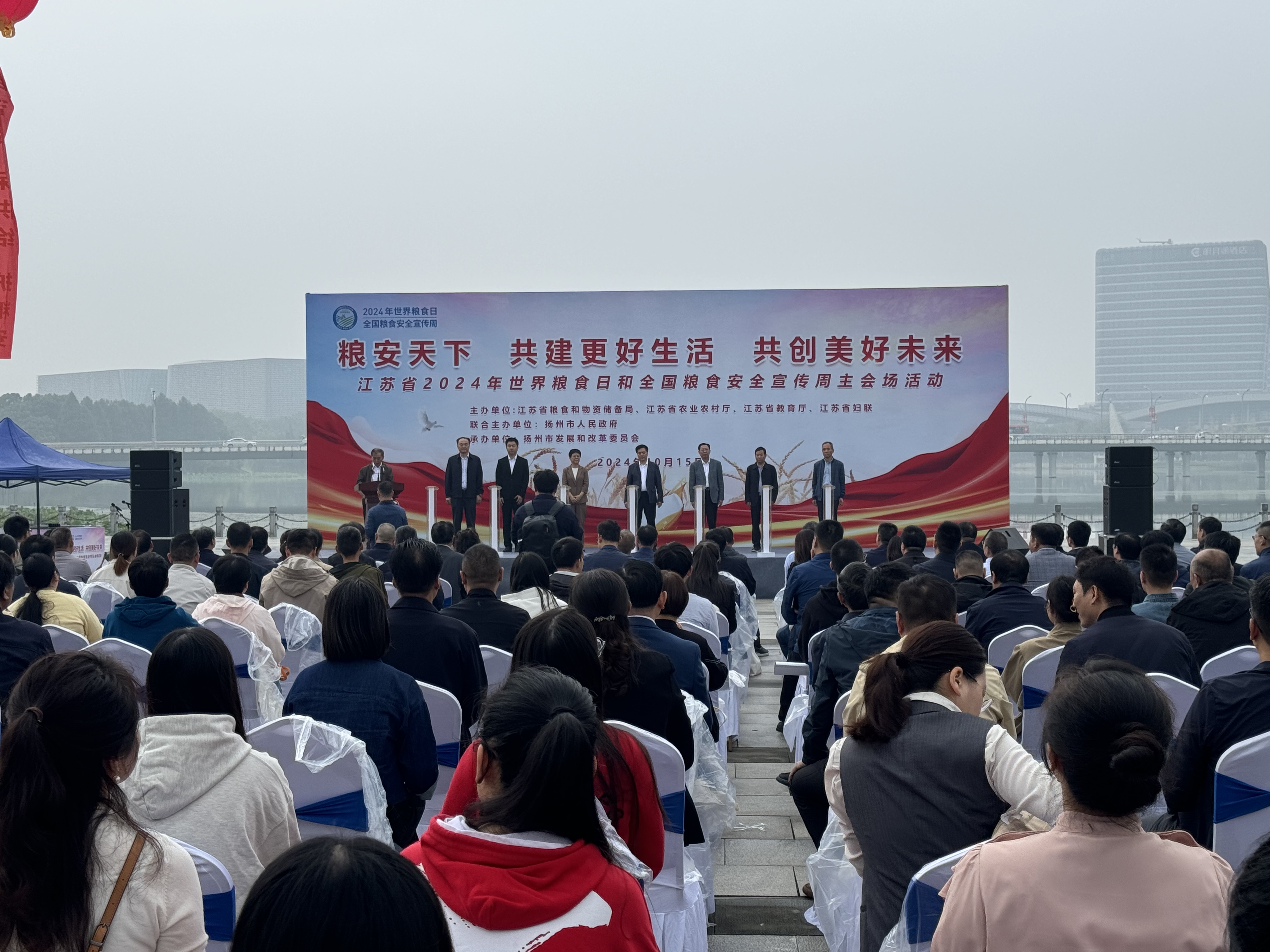 交汇点讯 10月16日是第44个世界粮食日,10月15日,江苏省2024年世界粮食日和全国粮食安全宣传周活动启动仪式在扬州举办。活动现场积极宣传推广爱粮节粮知识,倡导健康消费新风尚,呼吁全社会关注粮食安全问题,并采取更加有力的行动共同维护粮食安全。