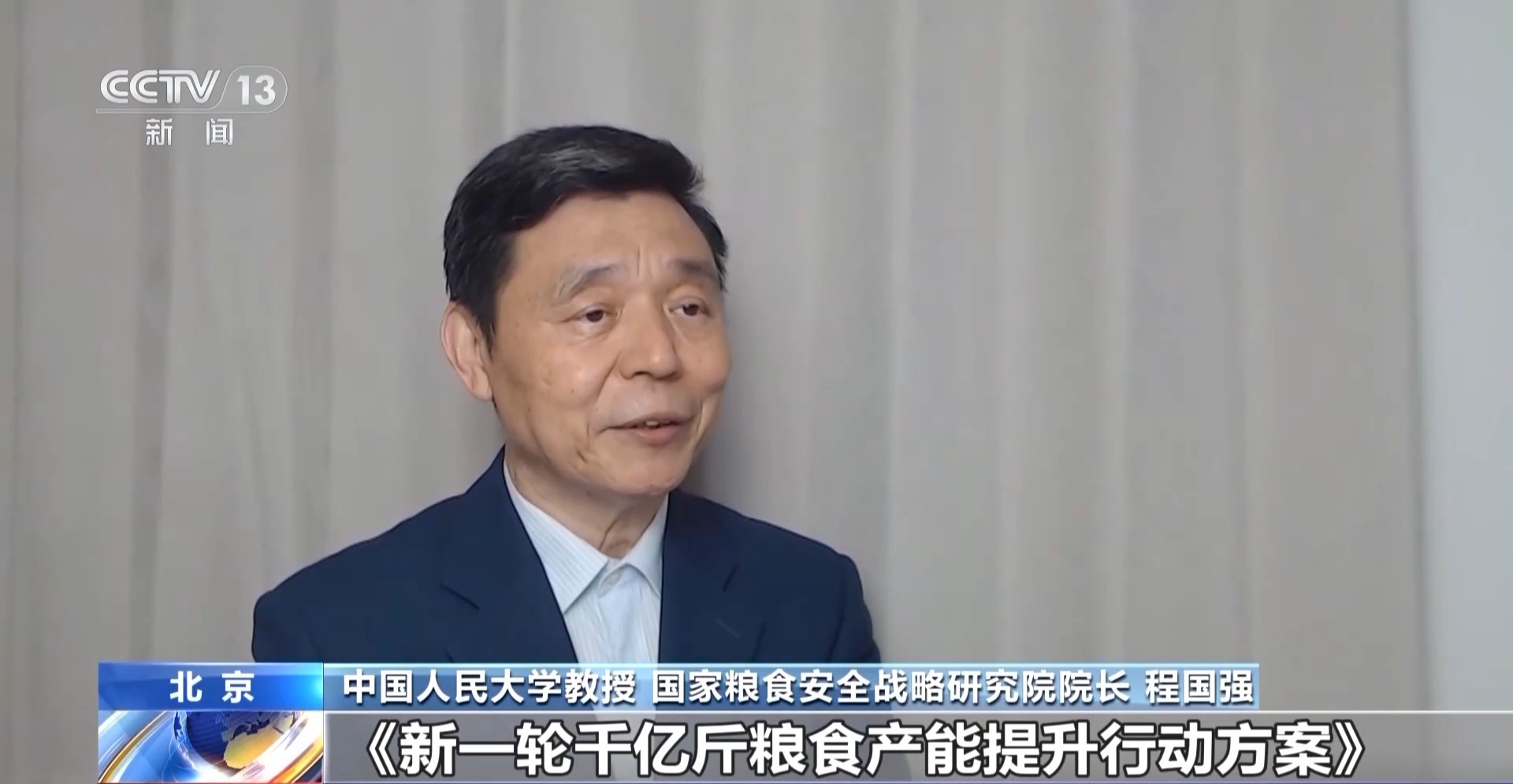 中国人民大学教授 国家粮食安全战略研究院院长 程国强:今年是《新一轮千亿斤粮食产能提升行动方案》实施的第一年,这个行动方案的目标是,到2030年实现新增粮食产能千亿斤以上,全国粮食综合生产能力进一步增强。在更高水平全方位夯实粮食安全根基,确保需要时能产得出、供得上。