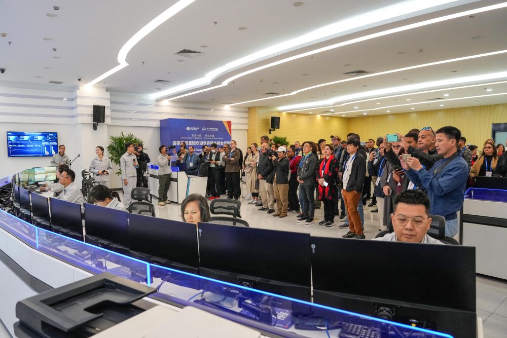 10月13日,嘉宾在国家能源集团新疆能源集控中心参观。新华社记者陈晔华摄