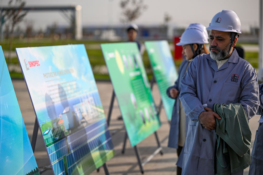 10月16日,嘉宾在中国石化新疆库车绿氢示范项目参观。新华社记者陈朔摄