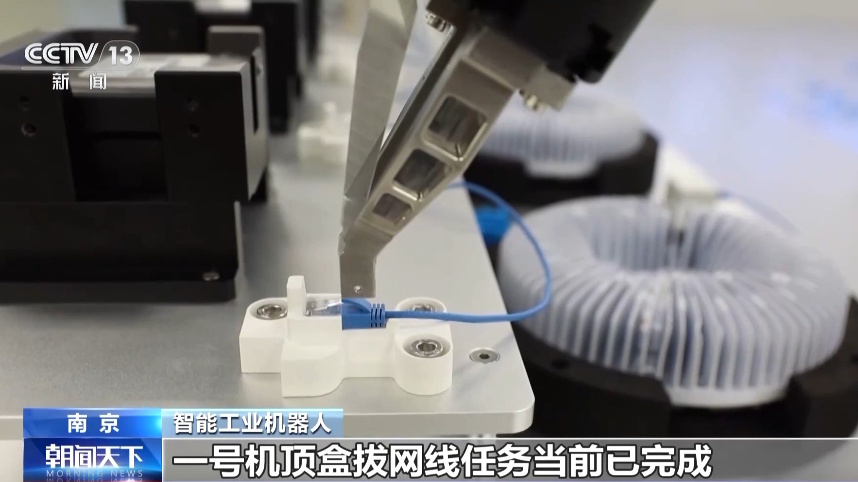 总台记者现场也体验了一下工厂正在开发的人机交互作业。记者先后发出拔出、插入机顶盒网线的指令,精细化的操作,智能工业机器人都顺利完成。